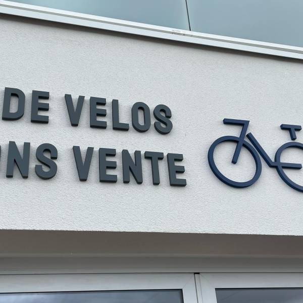 Le logo, créé par notre Studio graphique, a été découpé dans du pvc et décoré avec du film adhésif.
