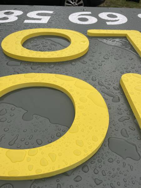 Pour ce client à Lacanau Océan, il s'agissait de mettre l'enseigne aux normes du règlement de publicité RLP et de la charte des commerçants. Pour cela , nous avons gardé l'ancienne enseigne que nous avons modifié avec un fond en alu ral 7046 gris foncé et du lettrage en pvc découpé.